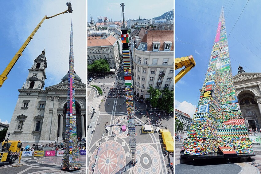 Найвища вежа з Лего, на спорудження якої пішло понад 45 тисяч деталей конструктора, що знаходиться в Будапешті, її висота 34,76 м. У її створенні брали участь школярі з усієї Угорщини. А поміщений на саму вершину вежі знаменитий кубик Рубіка є її останнім штрихом. Ну що ж, сподіватимемося, що вітер цієї вежі не страшний