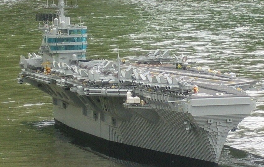 Житель Німеччини Молл Хокінг, великий шанувальник Лего, створив копію американського авіаносця "Гаррі Трумен". На створення цієї неймовірної моделі у нього пішло приблизно 200 тис. кубиків. Довжина авіаносця – 4,5 м, а вага – цілих 158 кг! Чоловік повторив не лише зовнішній, а й внутрішній вигляд авіаносця. Так, він додав моделі працюючі електричні лампочки, встановив рухомі ліфти та радари. Поряд з авіаносці пливе половинка підводного човна та артилерійський катер