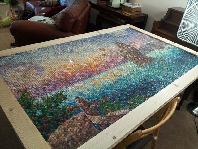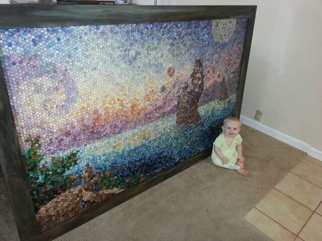 Лейсі Кадсен весь свій вільний час проводить за створенням шедеврів із мозаїки із плей-до. Жінка бере пластилін різних кольорів та формує з нього маленькі кульки, та був приклеює їх у основу. на створення своєї найвідомішої мозаїки під назвою «Ундіна», що складається з 12191 фрагмента, у Лейсі пішло 6 місяців і 152 цебра пластиліну.