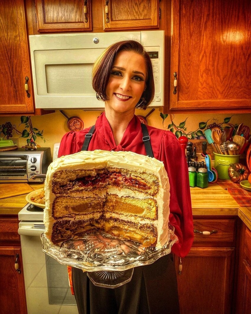 Американський святковий торт, що складається із трьох пирогів з популярними класичними смаками - яблучним, гарбузовим і вишневим. Всі пироги випікаються окремо, а потім складаються один на друга і прикрашаються на розсуд кухаря.