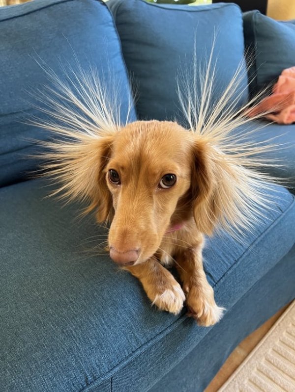 Ефект статичної електрики в будинку виникає при терті або переміщення предметів одягу, взуття та домашньої обстановки. Коштує нам колихнути синтетичний плед, як на нас одразу обрушується сніп блискавок! Справа, як кажуть, життєва і люди рідко звертають на це особливе увага. Але якщо вдома живуть звірятка, то вже зовсім інша розмова. Давайте подивимося на смішні знімки вихованців, які зіткнулися з статичною електрикою.