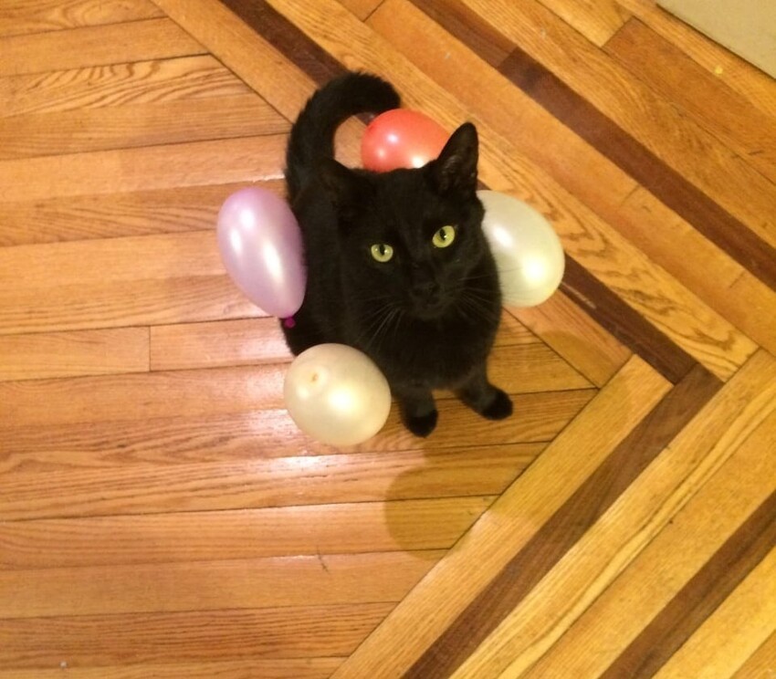 Мій кіт не в захваті від повітряних кульок, що приліпилися до нього.