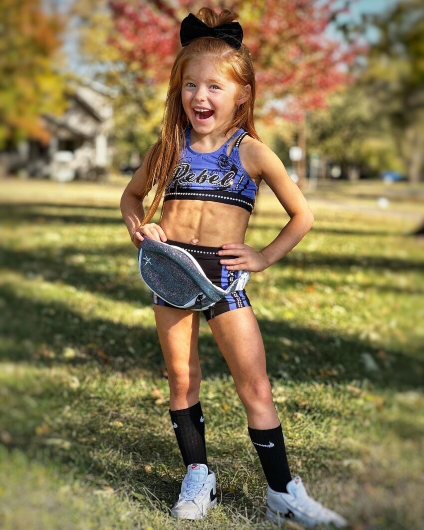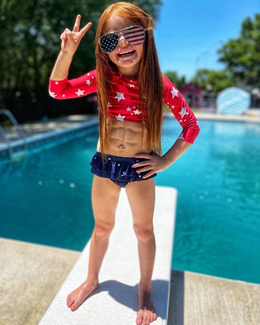 Кубики преса на животі малюки викликають чимало суперечок у мережі, люди пишуть, що дівчинка виглядає надто дорослою для свого віку, і батьки не дають їй залишатися дитиною.
