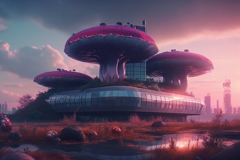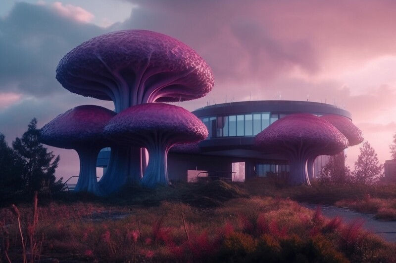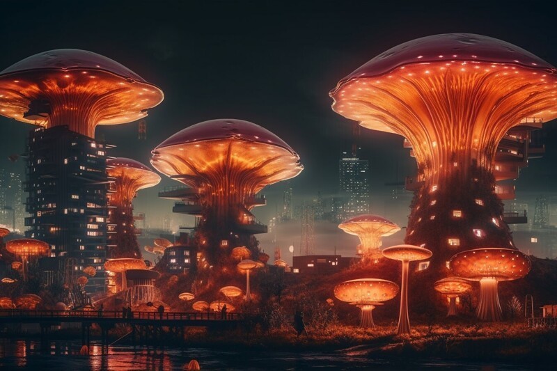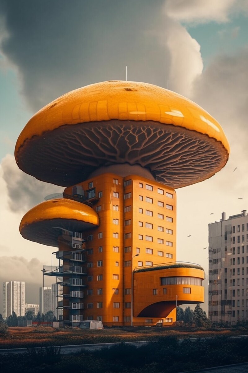 Нейросеть показала, як би виглядали вдома, якщо ми жили в грибному світі (18 фото) Категорія: Нейросітка, PEGI 0+ 29 березня 2023 Справжні урбаністичні пейзажі під речами. Дивні будинки, які насправді не існують. +2 Midjourney, гриби, картини нейромереж, нейронні мережі, незвичайна архітектура, будівлі