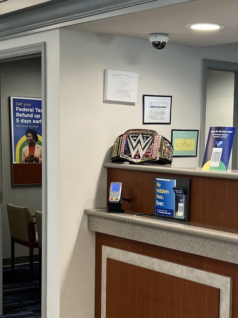 "Нічого такого, просто чемпіонський пояс з реслінгу в офісі банку"