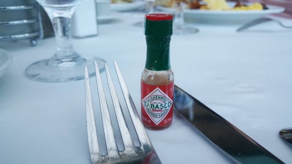 Одноразовий гострий соус у кафе. Цікаво, скільки за добу викидається таких пляшечок? Чому б не запропонувати гостю соус у окремому багаторазовому посуді?