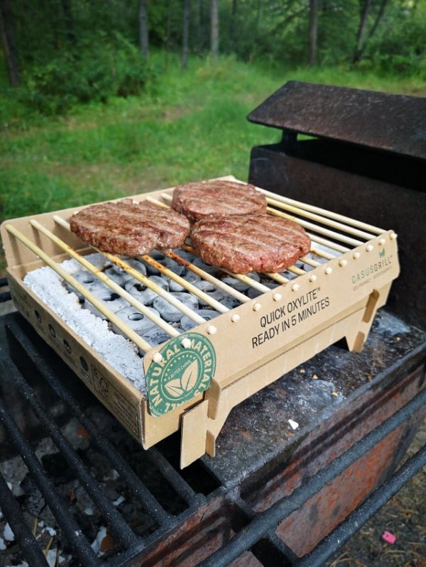 Справжній гриль потрібно зробити лише один раз, він виготовлений з простий сталі і є десятиліттями. Одноразовий гриль необхідно перевозити на човнах, вантажівках і так далі, що призводить до витрати викопного палива.