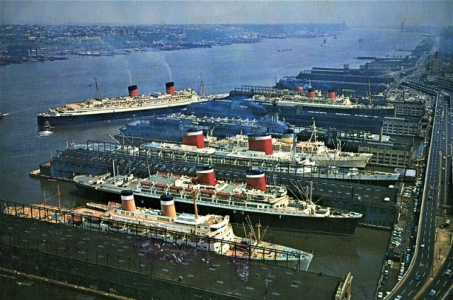 Океанські лайнери пришвартувалися біля пасажирського терміналу Нью-Йорка, 1960-ті роки