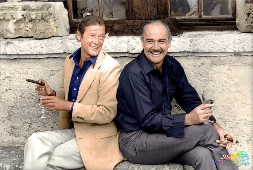 9. Роджер Мур та Шон Коннері розважаються по-бондовськи
