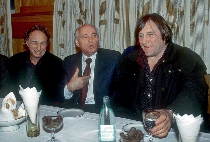 3. П'єр Рішар, Михайло Горбачов та Жерар Депардьє під час 18-го Московського Міжнародного кінофестивалю, 1993 рік