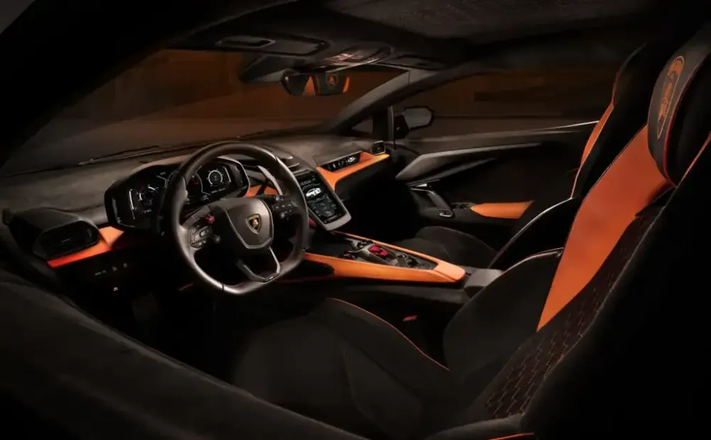 Інтер'єр суперкара особливих сюрпризів не приніс, крім розширених медіаможливостей. На Revuelto застосовано триекранну схему з додатковим 9.1-дюймовим екраном у пасажира. Остання компанія називає «другим пілотом», якому тачскрин дозволить бути повноцінним штурманом, оскільки, окрім клімату та інших налаштувань, з нього можна керувати та навігаційною системою. Нарешті, саме інтер'єром суперкара Lamborghini ще раз натякає на його екологічність. У гаму із семи десятків варіантів обробки салону включені матеріали, отримані з переробленої вторинної сировини.