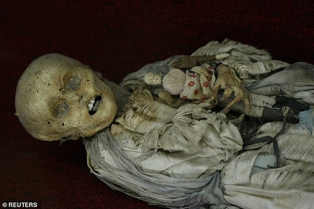 За тендітними скляними вітринами у музеї представлені жертви вбивств, злочинці, які були поховані живцем, і немовлята, поховані у костюмах святих — традиційний обряд у мексиканській вірі, щоб полегшити шлях дітей до неба.