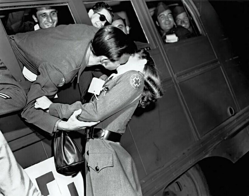 І цього солдата новина про перемогу змусила цілувати та обіймати всіх навколо, включаючи медсестру червоного хреста.