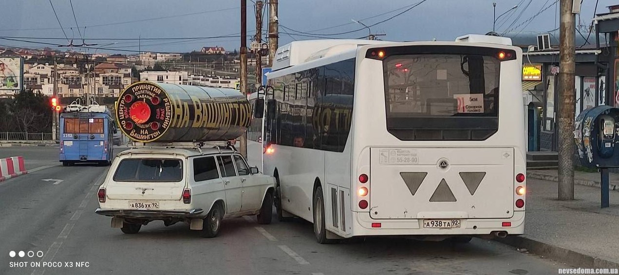 - У тимчасово окупованому Севастополі росіяни вдарили ядерною зброєю автобусом.