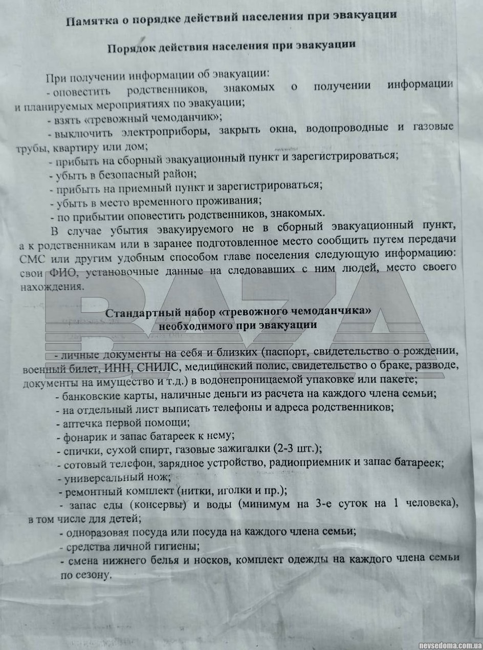 - «Сповістити родичів, взяти тривожну валізку, убути в безпечний район».