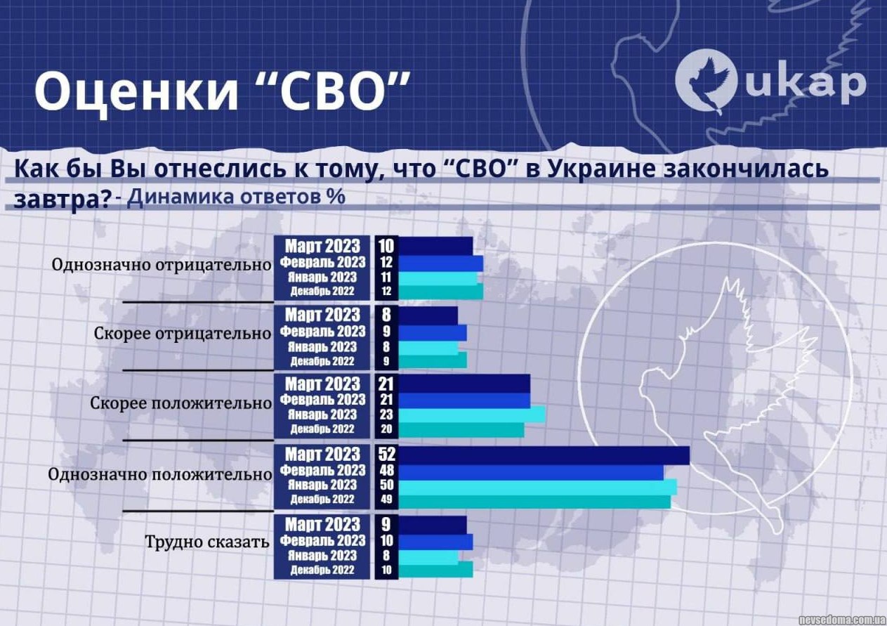 ▪️ 73% опитаних позитивно ставляться до перспективи завершення спецоперації вже завтра.