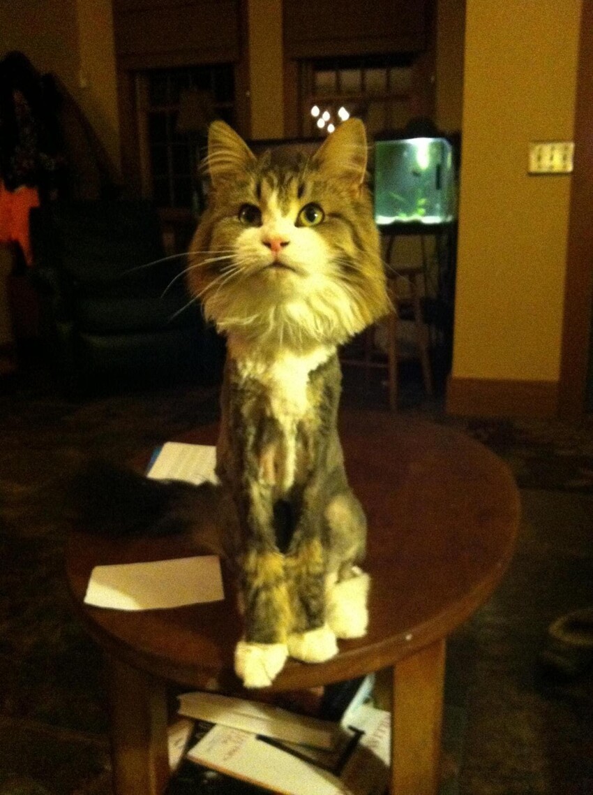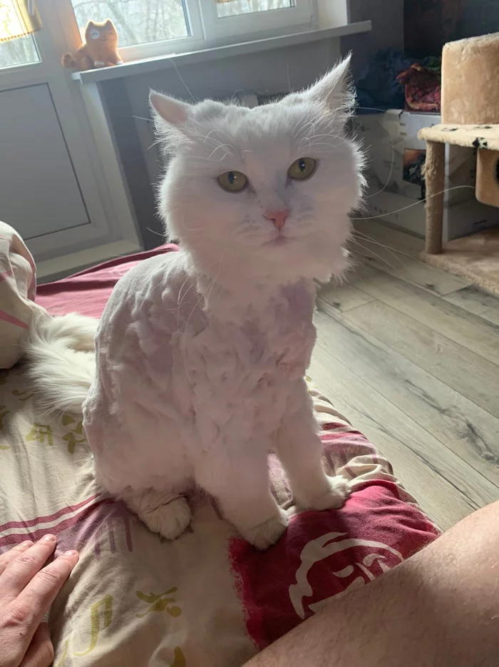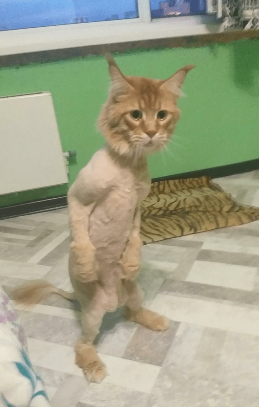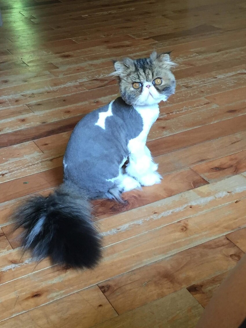 Кіт погано поводився у грумера і в результаті залишився з такою стрижкою