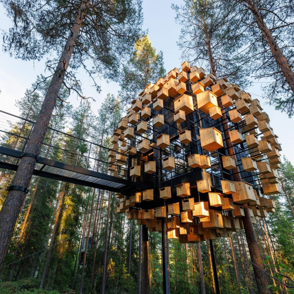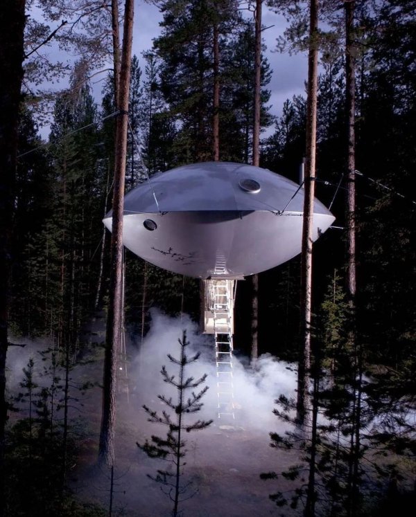 Номери шведського готелю Treehotel розташовані глибоко у лісі. Кожен із номерів являє собою окрему будову з авторською дизайн. Кожен номер є чимось особливим. Хочете провести вихідні в літаючій тарілці? А великому шпаківні?