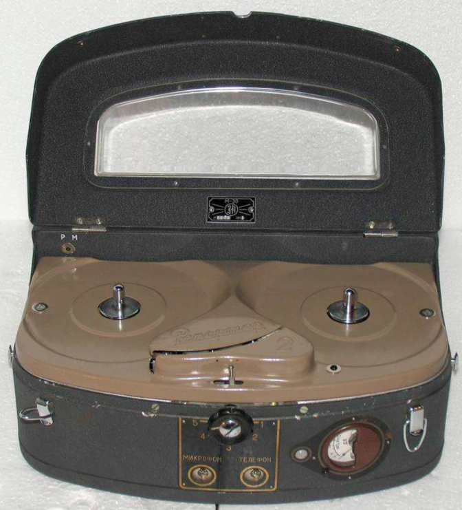 Звичайно, нарівні з магнітофоном "Дніпро-8" існувала і Найбільш просунута в технічному плані апаратура. Наприклад, "Репортер-2" (він же - М-30), теж мав невеликі габарити, але на відміну від "Дніпра", міг працювати від акумуляторних батарей, а чи не від пружинного заводу. Це пристрій теж виглядав як невелика валізка, в якій розміщувалося все необхідне: стрічкопротяжний механізм, підсилювачі, батареї, індикатор рівня запису, мікрофон, запасні котушки та навушники.