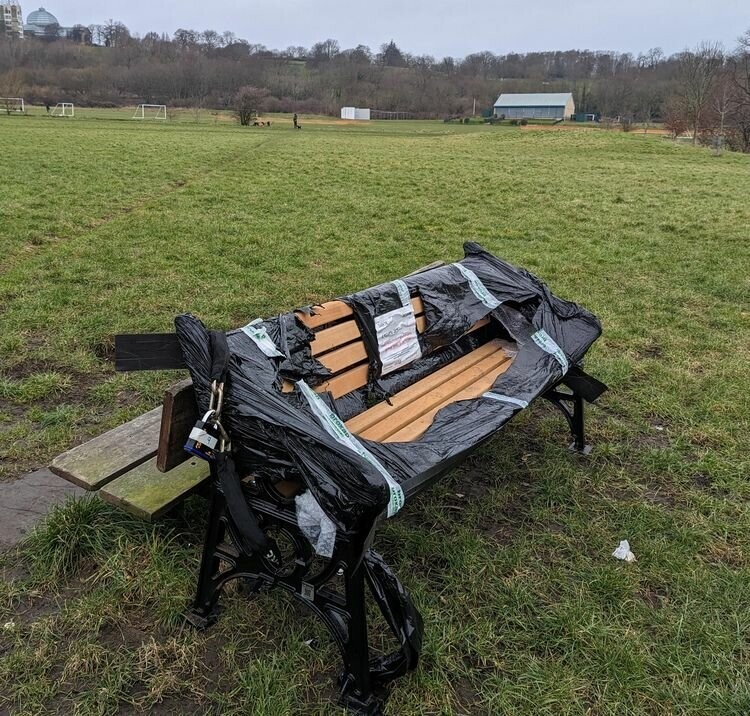 Зате тепер на лавці можна сидіти з обох боків. за мабуть, нова лава повинна була замінити стару, але робітники просто примотали її ланцюгом до вже стояв і навіть не зняли поліетилен. Або це ледарство вищого ступеня, або це був просто тимчасовий захід ????