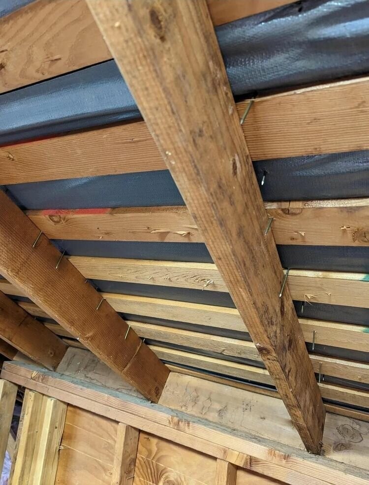 Як не важко помітити, робітники прибили дах якраз поряд з балками, до яких вона мала кріпитися. Здається, підрядник вирішив заощадити на одному з робітників, який мав контролювати процес зсередини. На цьому будиночку дах буде виглядати добре. До першого сильного вітру.