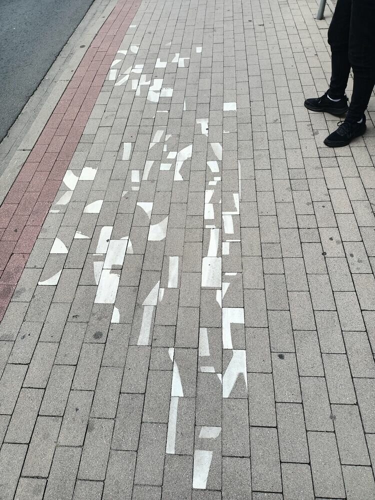 Виглядає так, ніби хтось упустив у цьому місці білу тарілку. Як повідомив автор, це велосипедна доріжка, а якщо правильно зібрати всі білі частини на бруківці, то вийде зображення велосипедиста ????