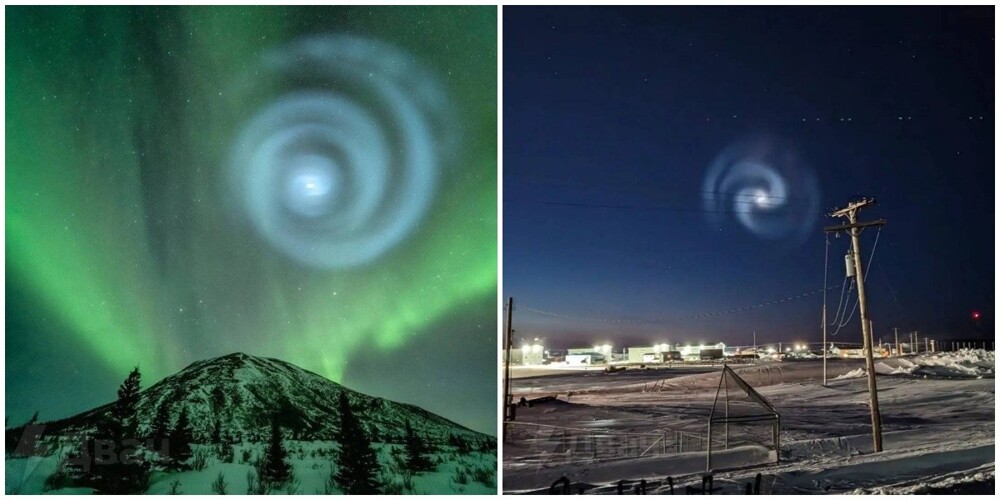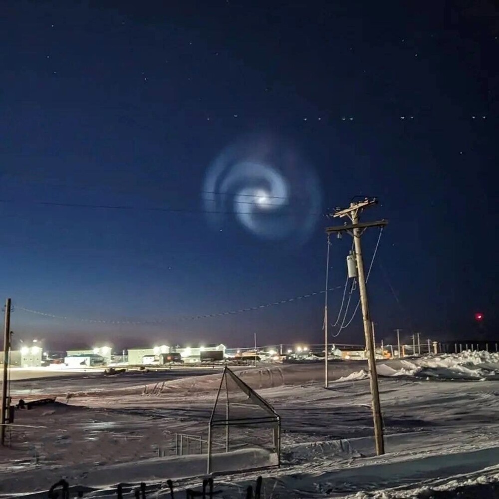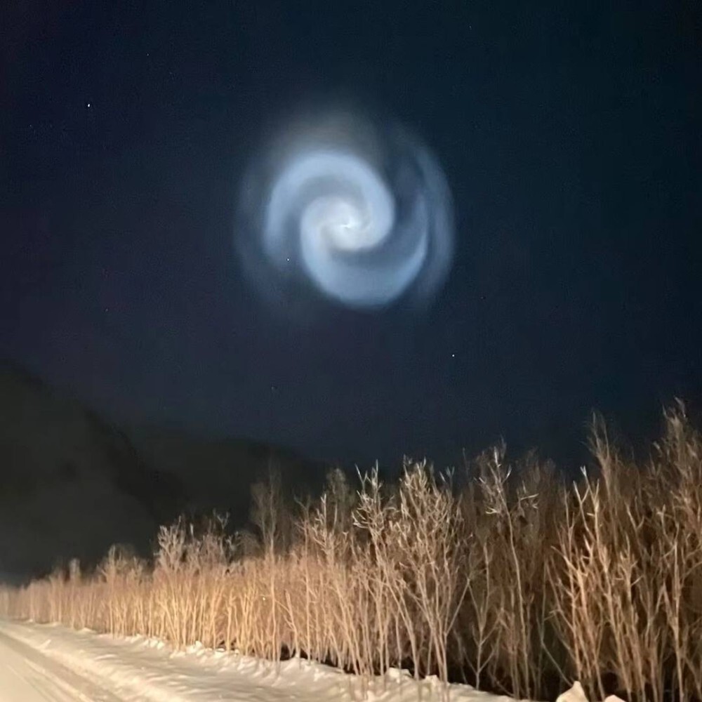 Декількома годинами раніше в Каліфорнії піднялася в небо ракета SpaceX. Малюнок з'явився після того, як викинута верхня ступінь ракети пролітав над Аляською. Спіраль з'явилася через паливо, яке модуль викидав під час обертання.