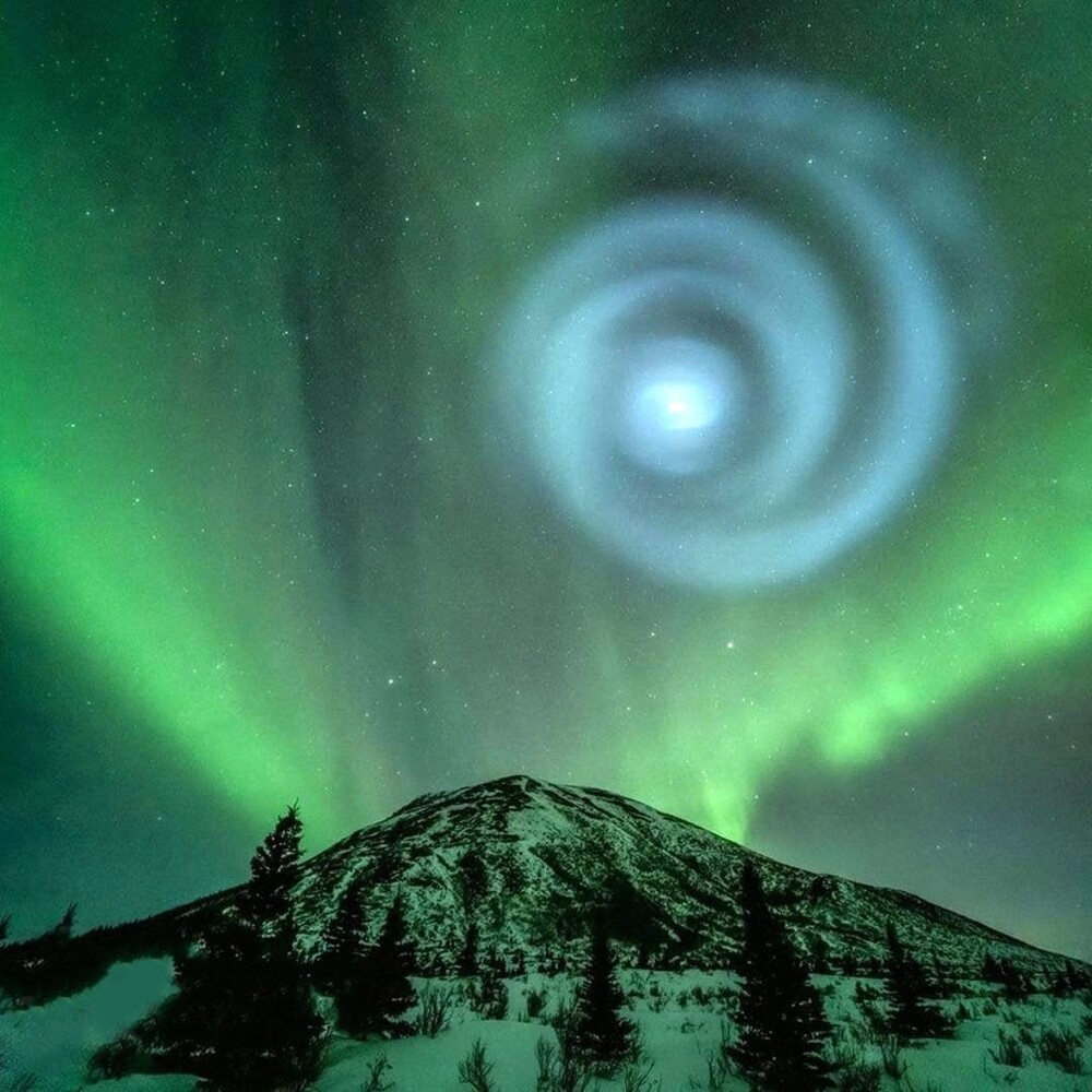 Дослідник і фотограф Тодд Салат зняв спіраль в небі на фоні вершини Доннеллі Доум ― древнього заледеніння, яке утворилося приблизно 100 тисяч років тому.