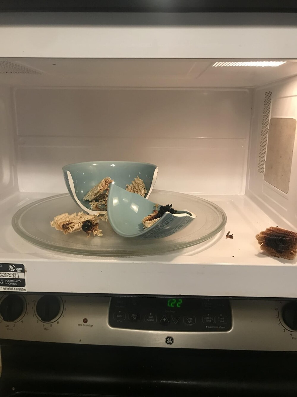 8. Сьогодні дочка дізналася, що станеться, якщо ви забудете налити води в локшину перед приготуванням у мікрохвильовій печі