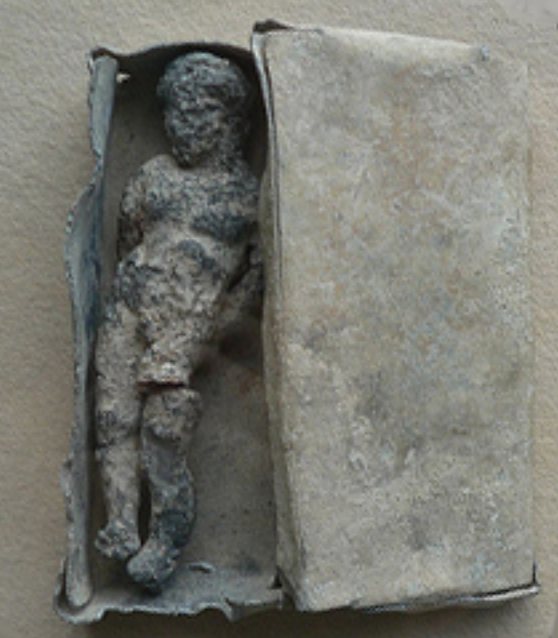 "Лялька Вуду" (колосою) та її "труна", знайдені неподалік Афін. Датована близько 400 р. до н.
