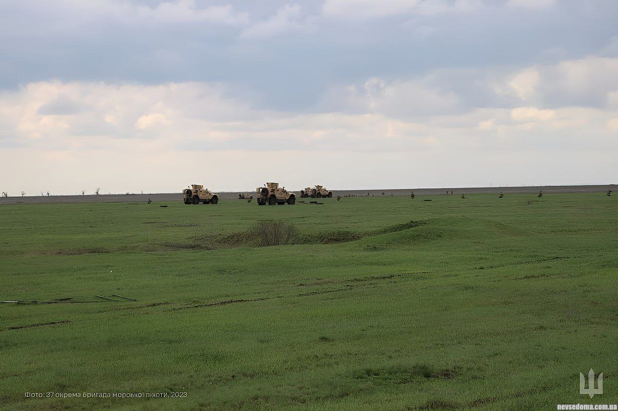 - Українські морські піхотинці з нещодавно створеної 37-ї окремої бригади морської піхоти тренуються з американськими MRAP Oshkosh M-ATV та французьким AMX-10RC.