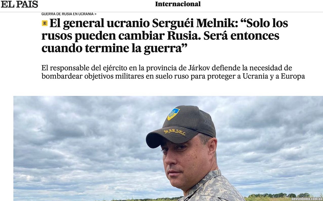 "Професійні військові вже виснажені, поранені чи відновлюються. Тому ми запрошуємо людей без військового досвіду та навчаємо їх. Чоловіків завжди не вистачає, але масової мобілізації в Україні не проводитимуться", — заявив (https://elpais.com/internacional/2023-04-24/el-general-ucranio-serguei-melnik-solo-los-rusos-pueden-cambiar-rusia-sera-entonces-cuando-termine-la- guerra.html) Мельник.