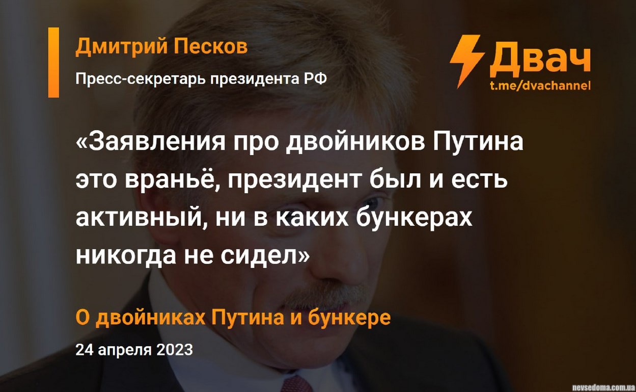 Всі сумнівалися, що у Путіна є двійники. Поки що це не спростував Пєсков»