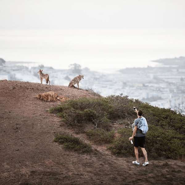 Койоти спокійно живуть на відкритих ділянках Сан-Франциско, повністю оточених багатоповерховими будинками. Міська та дика природа співіснує тут настільки близько, що немає страху з боку людей, ні з боку койотів.