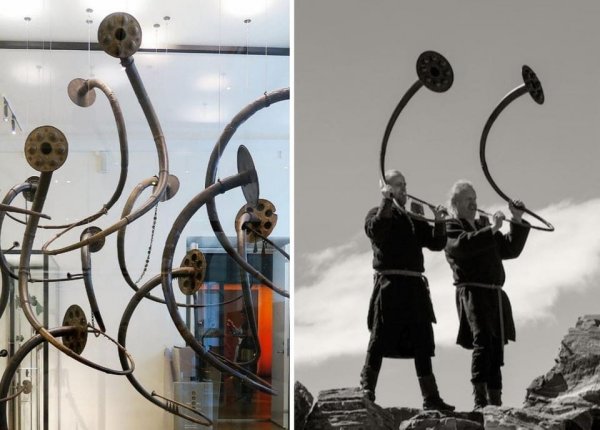 Люри бронзового віку з Данії. Ці ріжки є духові інструменти, відлиті із бронзи 3000 років тому. Зазвичай їх знаходять парами. 39 із них було витягнуто з торф'яних боліт, куди, як вважається, вони були поміщені як підношення.