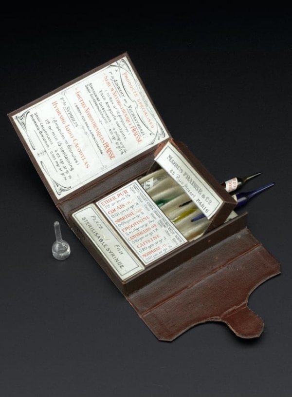 Аптечка з 7 скляними ампулами - з ефіром, кокаїном, морфіном та кофеїном. Франція, 1900-1910 роки