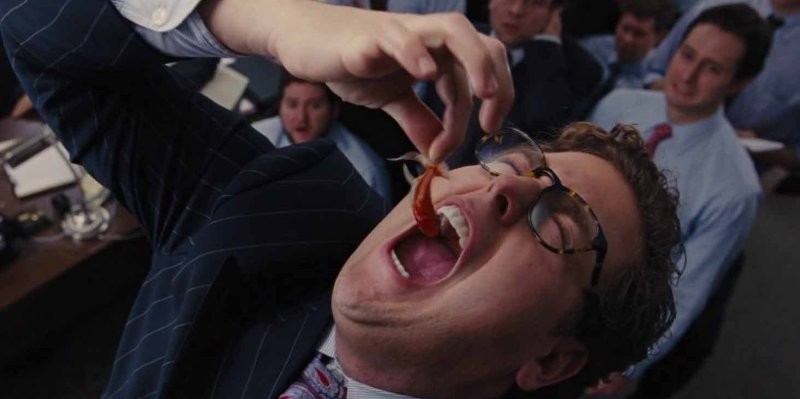 4. У фільмі "Вовк з Уолл-стріт" (2013) сцена, в якій Джона Хілл їсть золоту рибку, була знята за участю справжньої рибки. При цьому на знімальному майданчику був професійний дресирувальник тварин