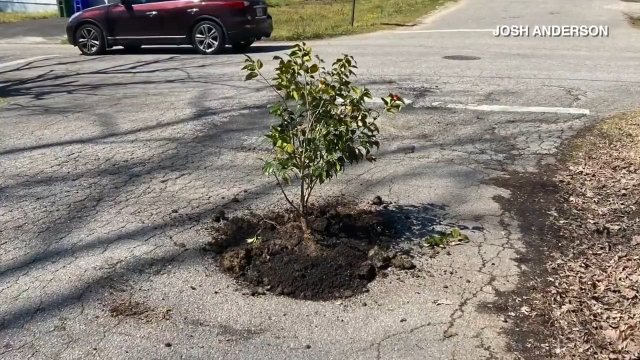 Здається, коли зійшов сніг, ми втратили трохи асфальту. Та що там трохи, швидше дуже багато. Не так багато, як у Вірджинії, де чоловік вирішив натякнути робітникам, що настав час закласти яму - і посадив дерево.