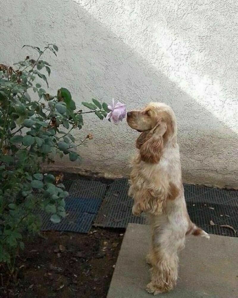 Він точно знає, як бути в моменті: зупинився, щоб понюхати троянди