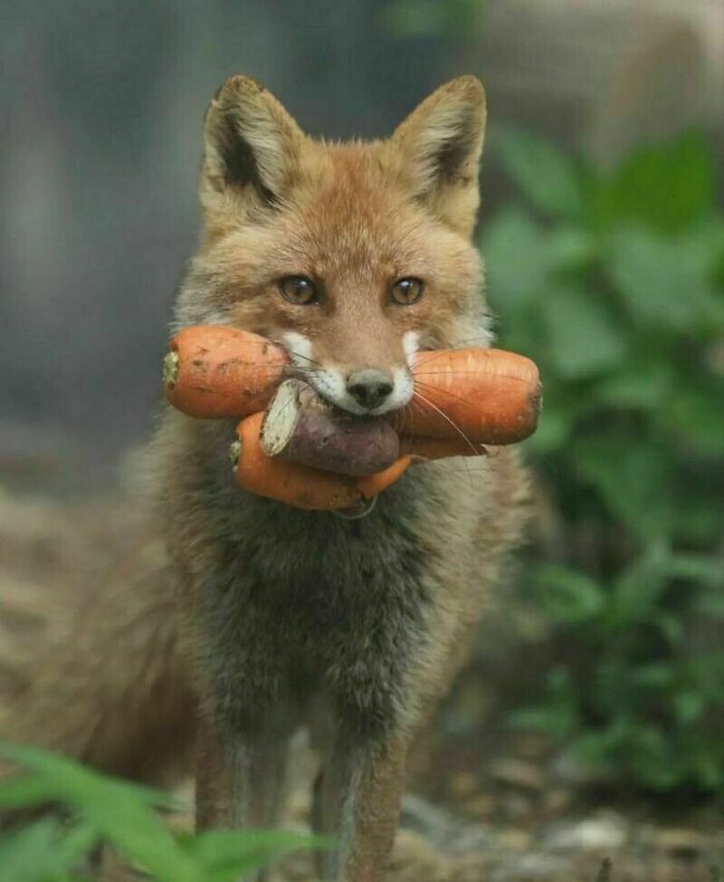 Можливо, лисиця несе гостинці своїм друзям кроликам