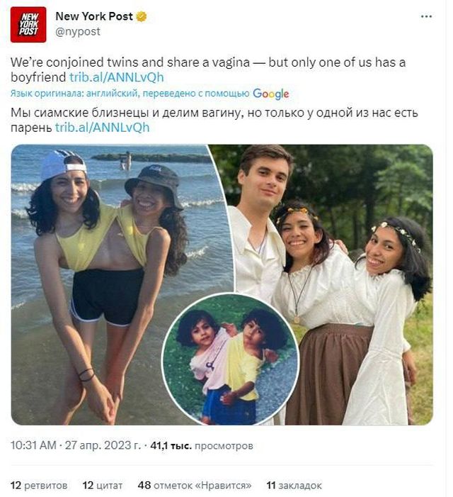Чи можна зустрічатися з кимось, якщо поряд з тобою завжди знаходиться ваш сіамський близнюк? Запитання звучить дуже дивно, але... так. Це підтверджує історія 22-річних Кармен та Люпіти з Мексики, які є сіамськими близнюками. Незважаючи на таку аномалію, Кармен (яка справа) познайомилася з хлопцем на сайті знайомств ще 2022-го і зустрічається з ним досі.