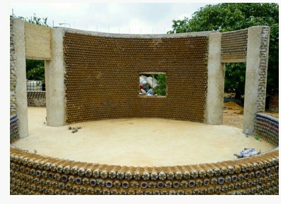 Етапи будівництва нових житлових кварталів прості. Пластикові пляшки однакового обсягу заповнюються сухим піском. Незвичайні будматеріали укладаються один на одного і скріплюються розчином з глини та цементу. Так виходять міцні стіни, які не бояться ні вогню, ні землетрусів, ні куль. Анітрохи не гірше шлакоблочних.