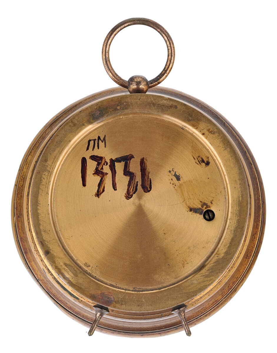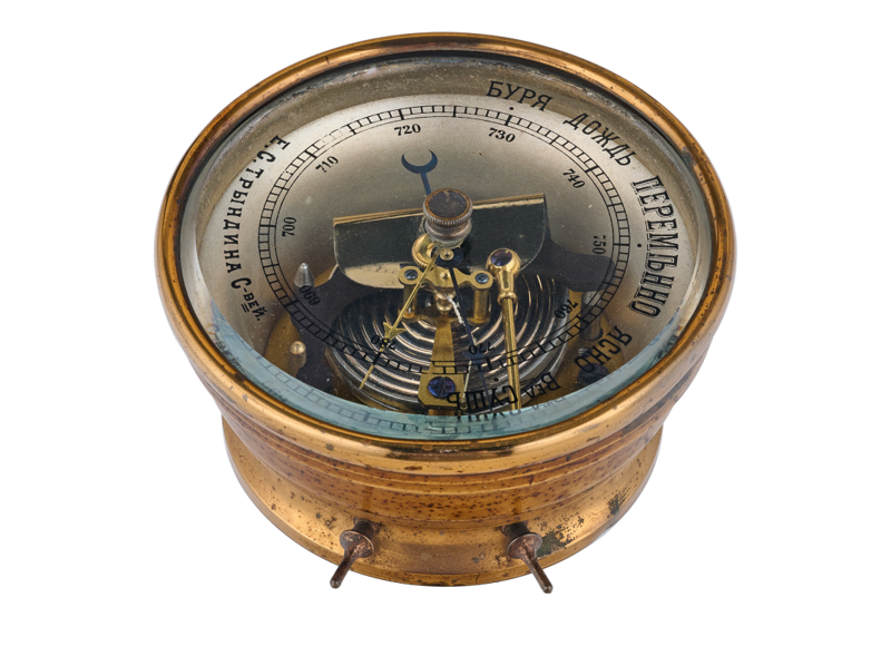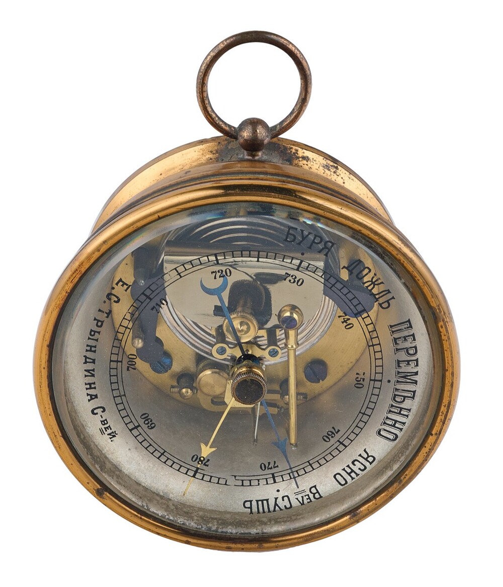 Анероїд з колекції Політехнічного музею. фірмою «Е.С. Триндіна Синовей». Ця компанія була одним із найбільших виробників фізичних, геодезичних та математичних приладів. Фірма виросла з невеликої майстерні, яку в 1780-х заснував московський механік Сергій Триндін. Його сини та онуки продовжили та розширили сімейну справу: у 1884 році вони відкрили велику фабрику та магазини, а також налагодили виробництво медичних інструментів.