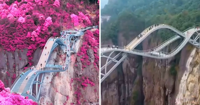 Двоярусний міст звели до КНР у 2017 році. Це дивовижне будову приваблює туристів з усього світу. Головна його особливість скляний та абсолютно прозорий настил. У відвідувачів при його відвідуванні є реальна можливість зазирнути у прірву та випробувати свої нерви на міцність.