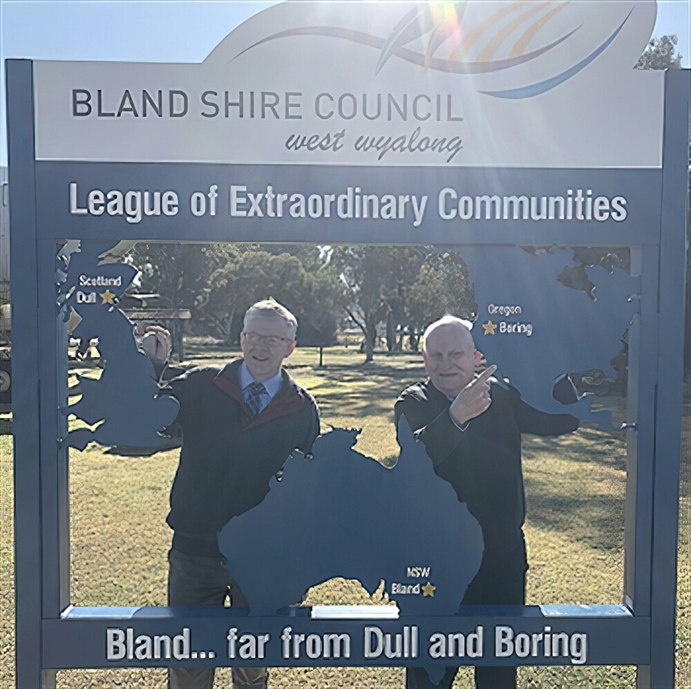...Через рік вони об'єдналися з графством Бланд (Новий Південний Уельс, Австралія), щоб сформувати Лігу надзвичайних спільнот. Всі назви в перекладі з англійської означає «нудний», "нецікавий".