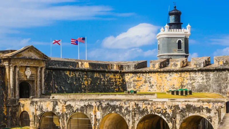 Ця іспанська цитадель 16-го століття, що охороняє вхід до затоки Сан-Хуан, - одна з найбільш вражаючих споруд на Карибах. Захищений ровом (з підйомним мостом), кам'яними зубчастими стінами та крутими морськими скелями, замок відбив безліч нападів, у тому числі кілька нападів французьких піратів та напад сера Френсіса Дрейка 1595 року. Однак він здався американським військам після запеклої морське бомбардування під час іспано-американської війни.
