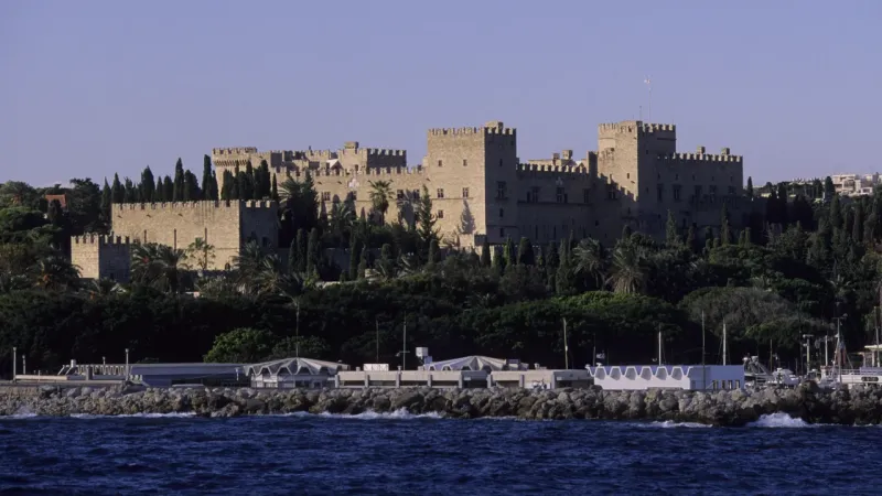 Цей класичний середньовічний замок височить над островом Родос у Егейському морі. Спочатку побудована як візантійська цитадель, вона була перетворена на її нинішню готичну форму лицарями-хрестоносцями Святого Іоанна, коли Родос служив резиденцією їхнього великого магістра. Нині це пам'ятник Всесвітньої спадщини ЮНЕСКО та головна туристична пам'ятка острови.