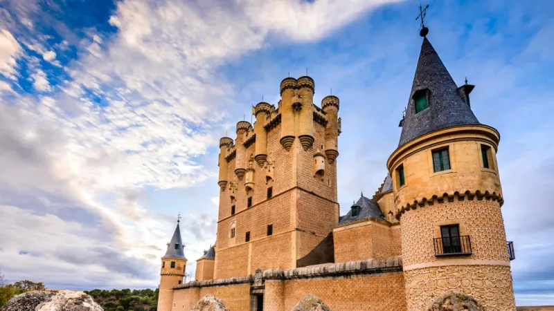 Алькасар — один із найдивовижніших замків у всій Європі. Він розташований на вузькому скелястому мисі, що височить над рівнинах Старої Кастилії у центральній Іспанії. Хоча спочатку це був римський форт, споруда за сотні років перетворилася на прототип середньовічного замку з глибоким ровом, підйомним мостом, круглими сторожовими вежами та міцною фортецею, а також багато прикрашеними королівськими покоями. Замок Сеговії найбільш відомий як резиденція королеви Ізабелли та могутнього Філіпа II до того, як королівський двір було перенесено до Мадрида.
