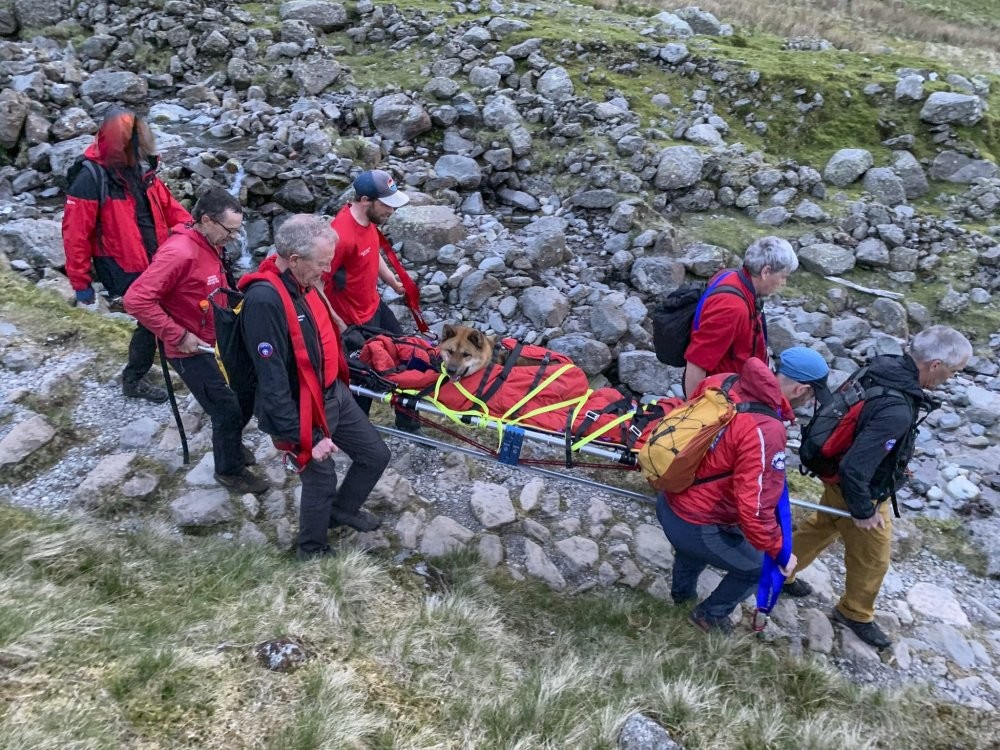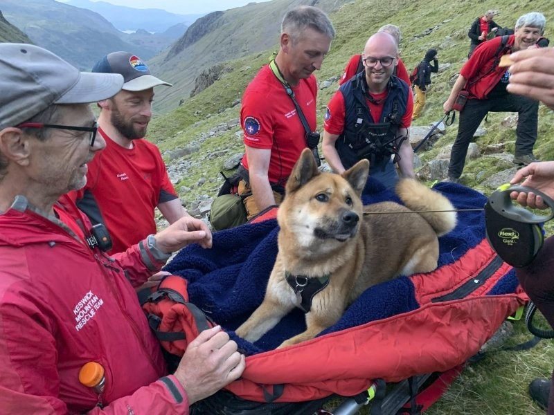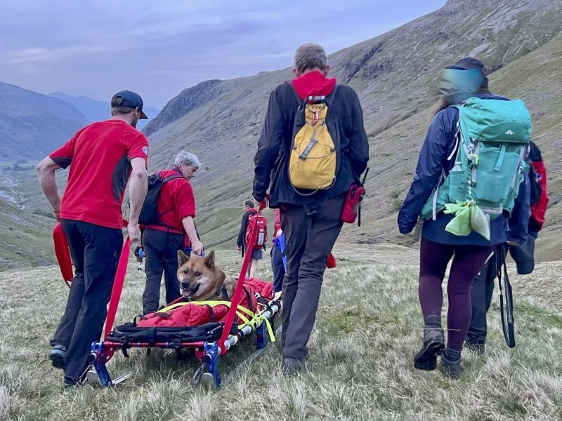 Песик породи акіта-іну отримав травми на гірській вершині Скофелл-пайк в Англії. Господарі взяли його з собою на сходження, але в час його пес пошкодив лапи - настільки, що не міг самостійно спускатися.