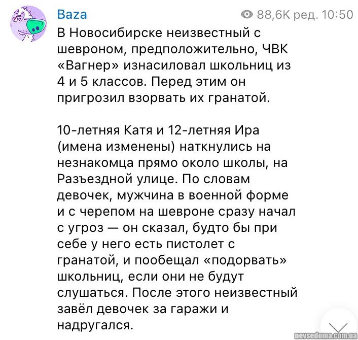 - Зек-вагнер у Новосибірську зґвалтував двох учениць 4 та 5 класу